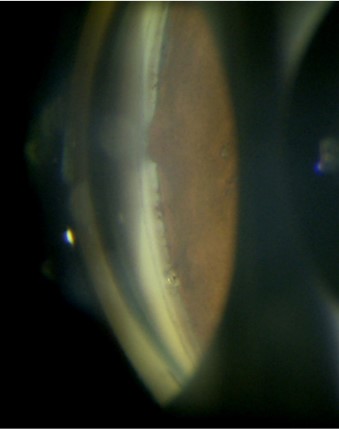 水晶体再建術併用眼内ドレーン挿入術で両眼にiStent inject Wを挿入。右上方はPASができたため1個閉じてしまった。しかし半年経った現在も緑内障点眼薬なしで眼圧17mmHgで安定している。