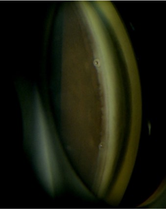 56歳 女性 POAG術前 眼圧 右眼 20mmHg 左眼 20mmHg術後 眼圧 右眼 17mmHg 左眼 17mmHg水晶体再建術併用眼内ドレーン挿入術で両眼にiStent inject Wを挿入。右上方はPASができたため1個閉じてしまった。しかし半年経った現在も緑内障点眼薬なしで眼圧17mm...